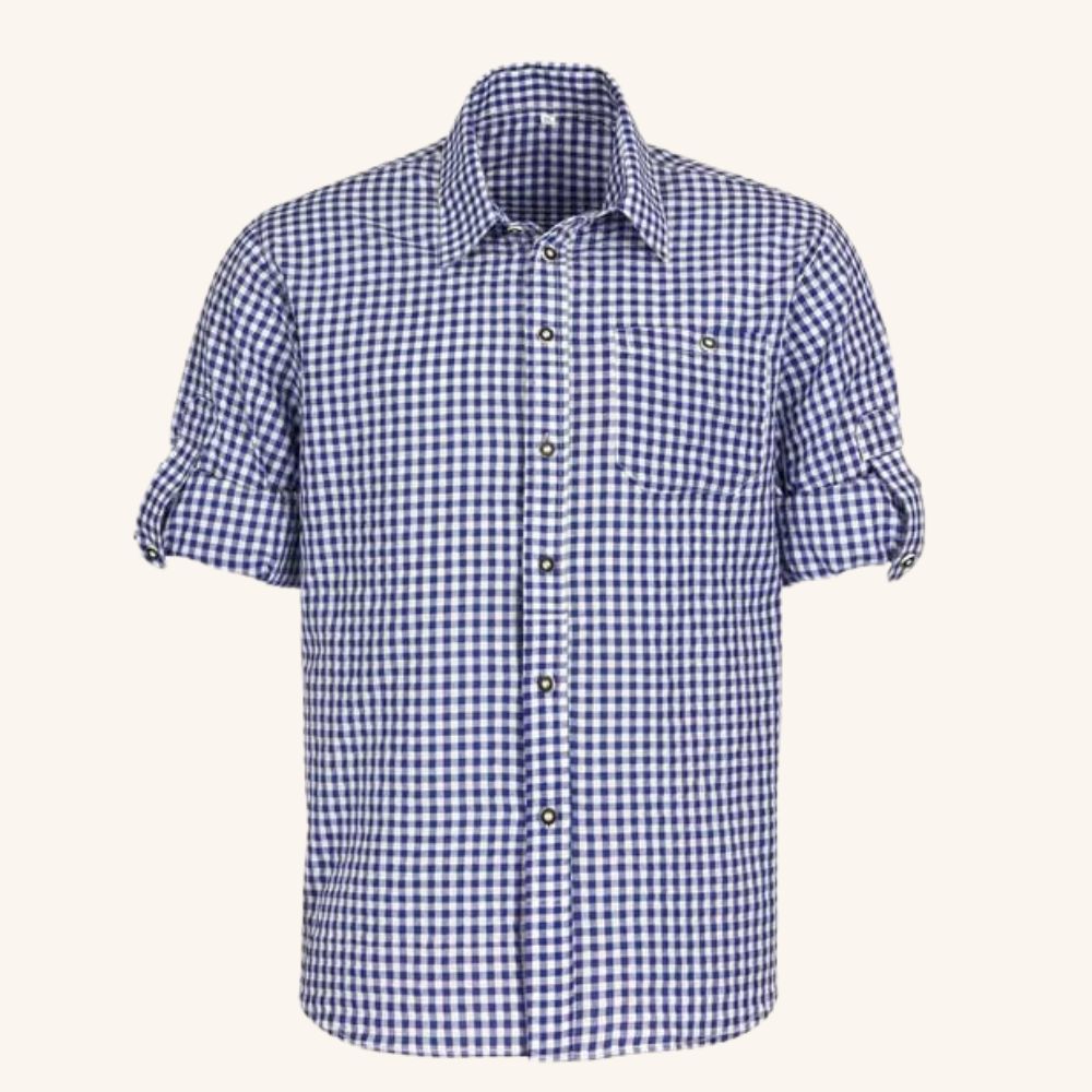 Dieses stilvolle Trachtenhemd für Herren im klassischen blau-weißen Karomuster überzeugt durch zeitloses Design, hohen Tragekomfort und hochwertige Verarbeitung. Ob auf dem Oktoberfest, der Wiesn, dem Volksfest oder bei traditionellen Feiern – mit diesem karierten Trachtenhemd bist du immer perfekt gekleidet.