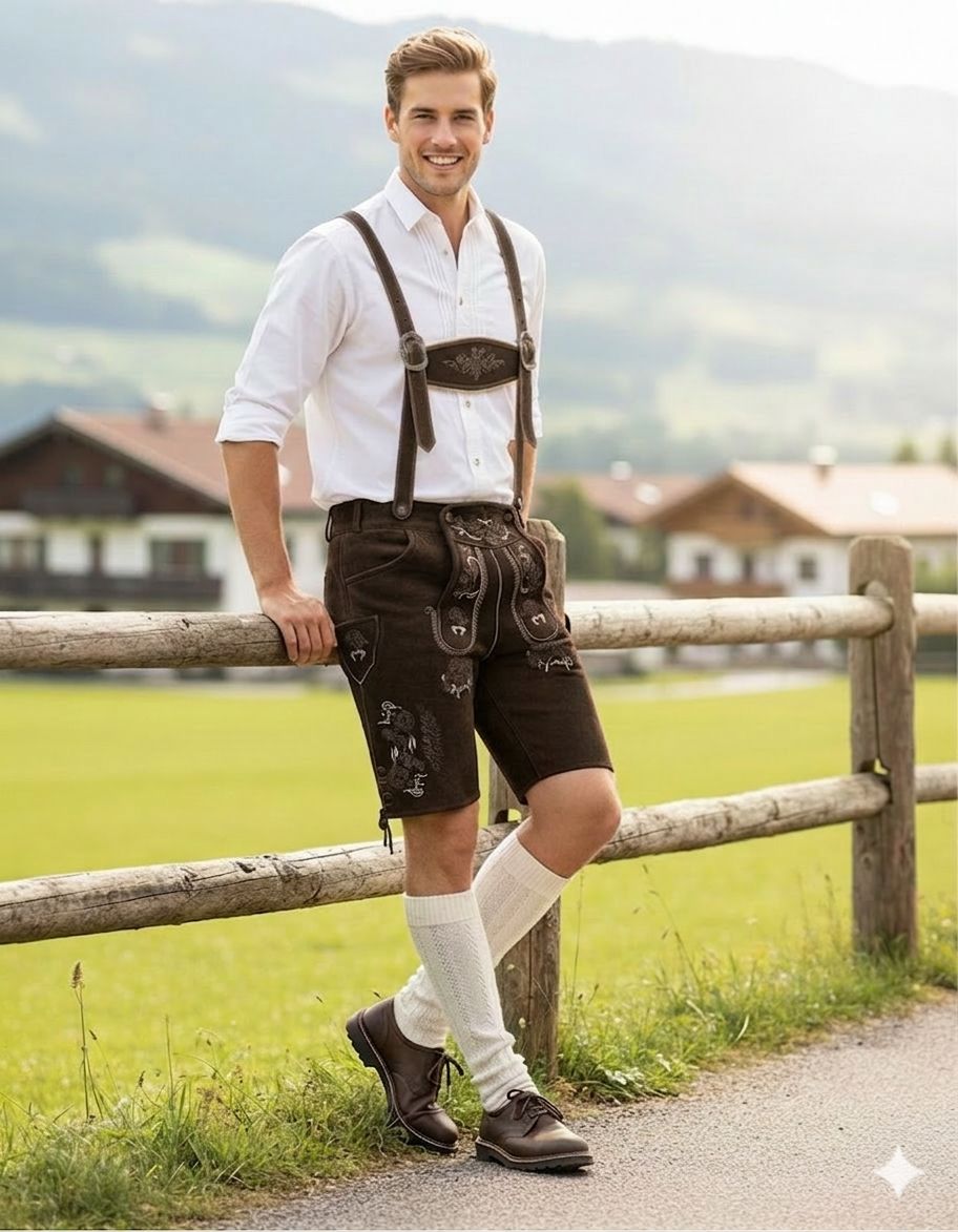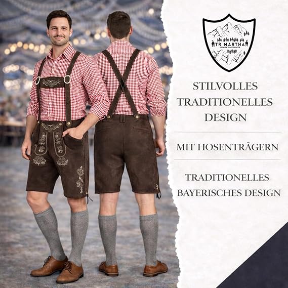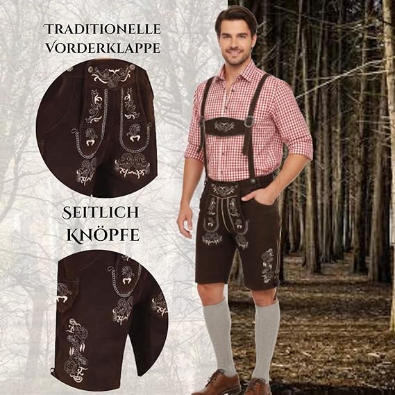 Der knieumspielende Schnitt sorgt für einen traditionellen Auftritt, während die seitliche Schnürung und der bequeme Sitz optimalen Tragekomfort bieten. Perfekt für alle, die klassische Tracht stilvoll tragen möchten.
